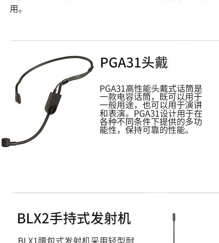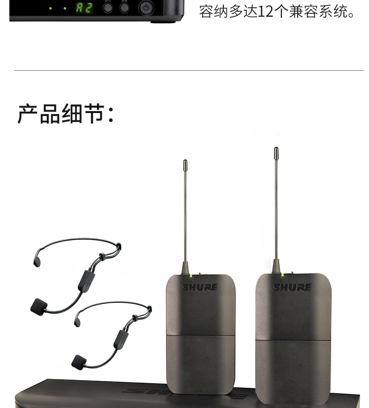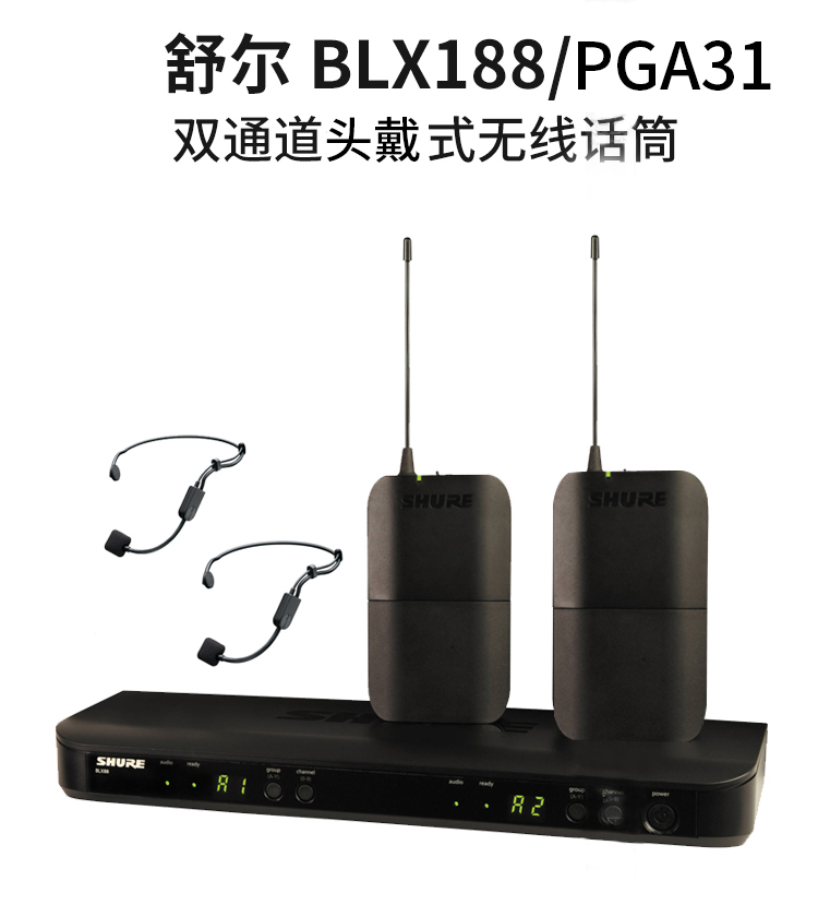 SHURE 舒爾BLX188/PGA31BLX188/CVL無(wú)線頭戴領(lǐng)夾話筒會(huì)議演講學(xué)校教學(xué) BLX188/PGA31 雙頭戴