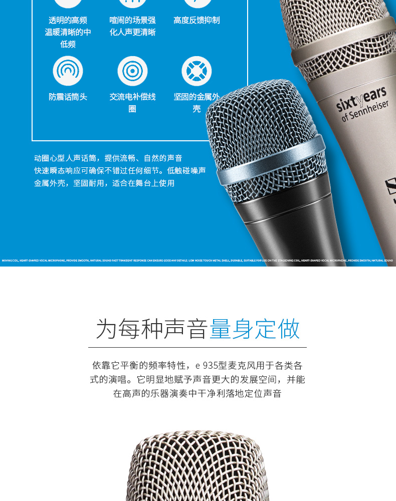 SENNHEISER 森海塞爾E935紀念版動圈話筒舞臺演出主持會議演講家庭KTV吉他彈唱麥克風