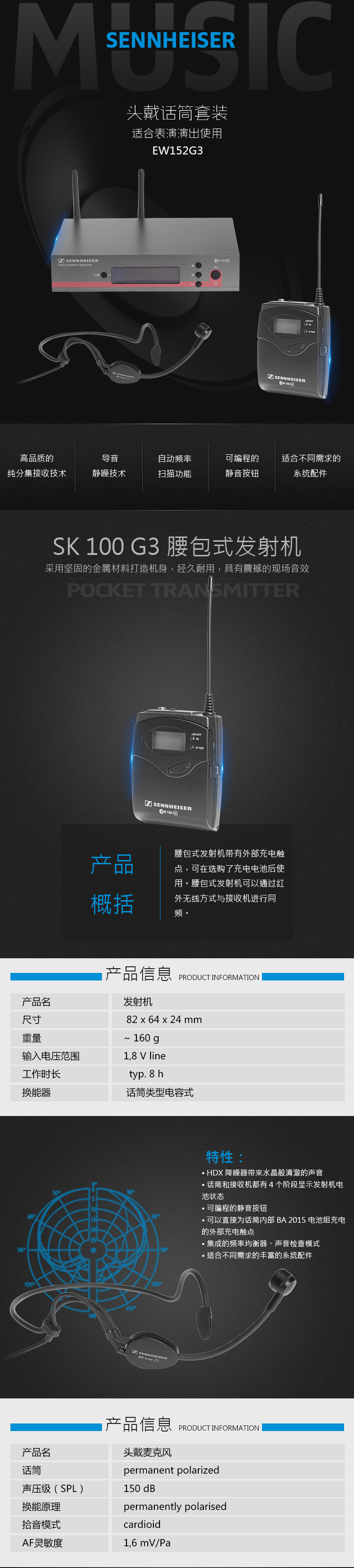 SENNHEISER 森海塞爾 EW152 G3 頭戴無線 話筒 舞臺 演出 會議